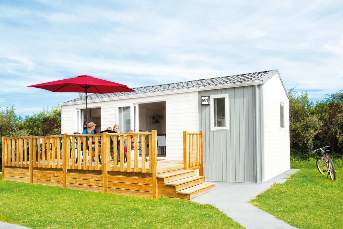 Mit ca. 34 qm (zzgl. Terrasse!) ist das Mobilheim geräumiger als ein Wohnwagen und verfügt zudem über eine eigene Terrasse.